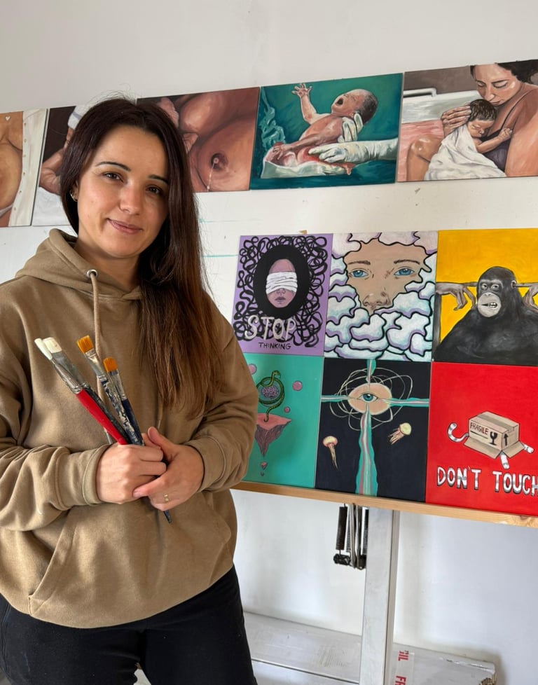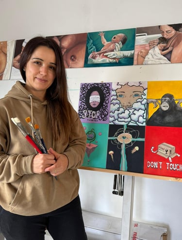 Apaixonada por transformar emoções em arte, utiliza a sua prática como um meio de libertação e conexão com o mundo.